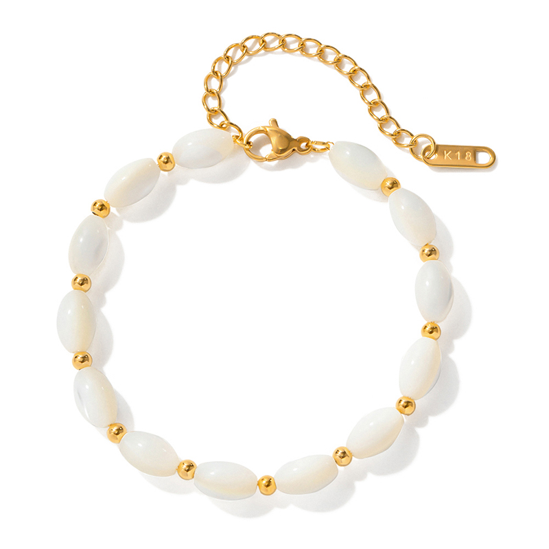 Oval Beaded Bracelet with Shell Pearls 18K Gold