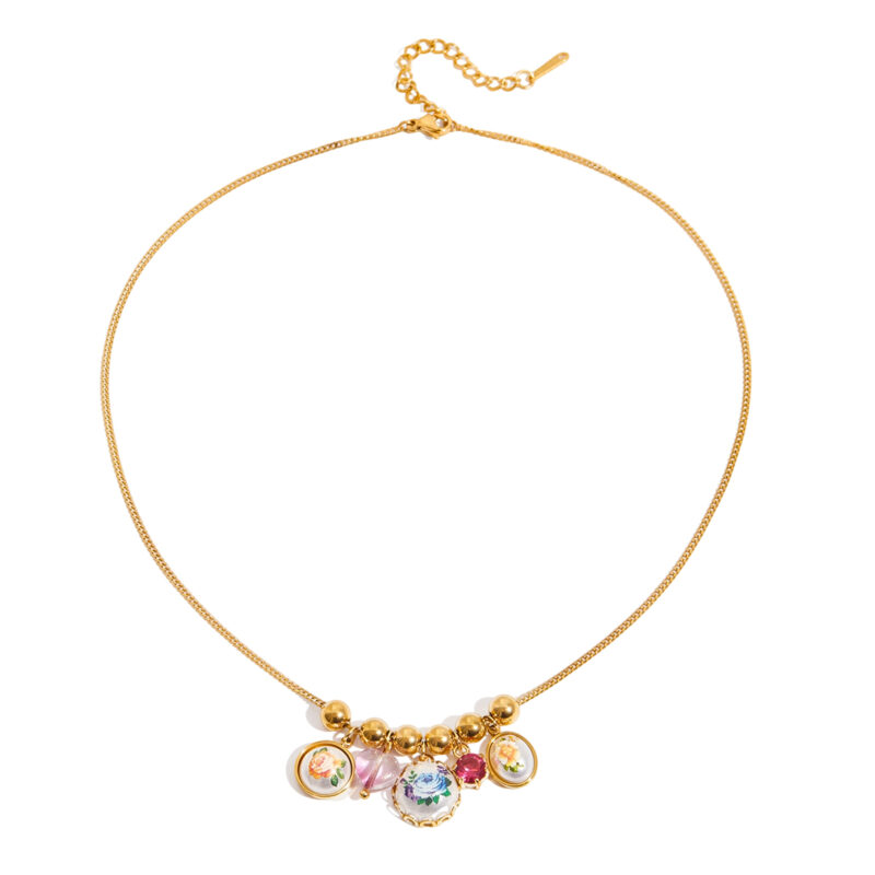 Romantic Gold Stainless Steel Zircon Crystal Necklace